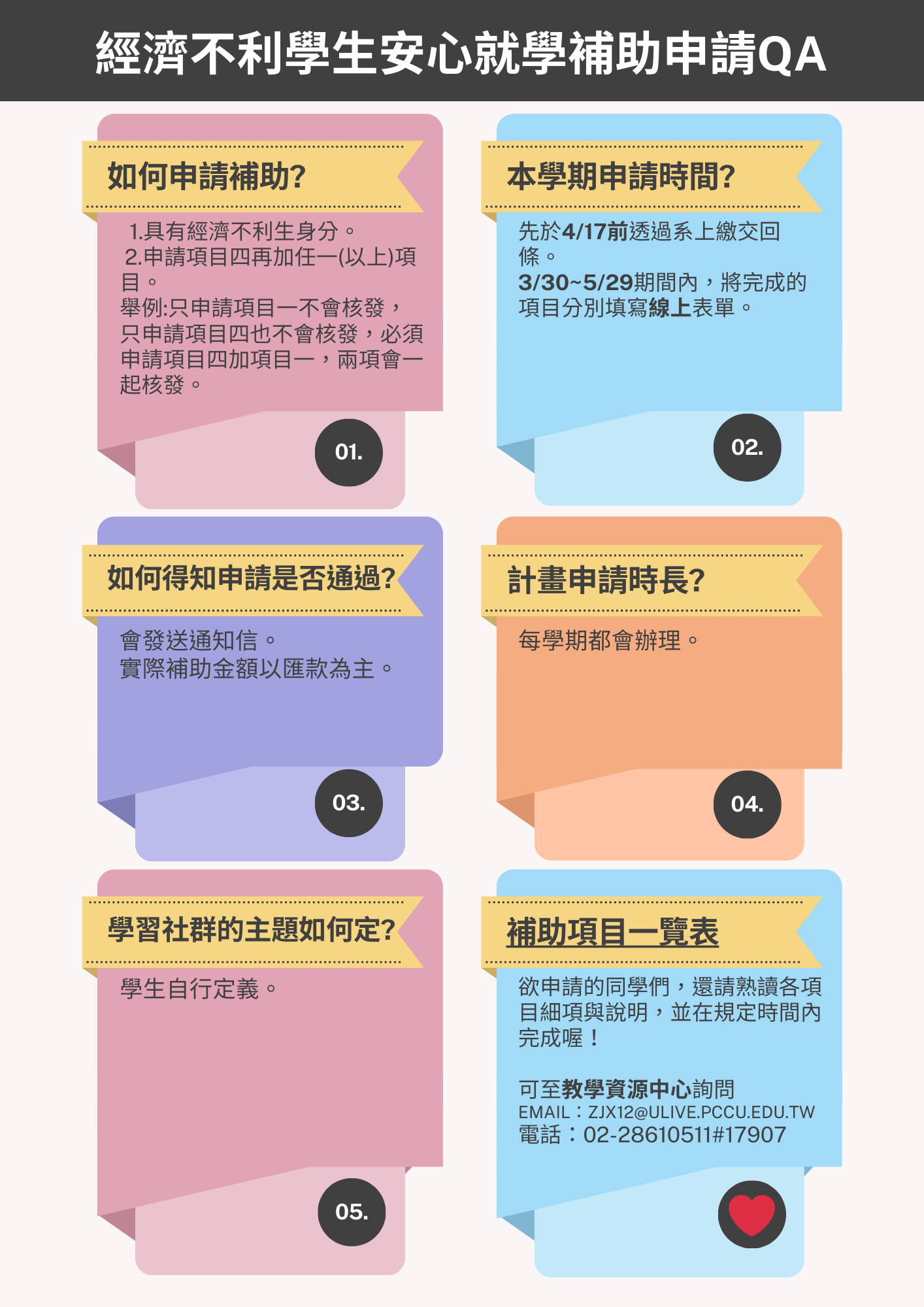 (詳細規範與需繳交之資料請參閱網頁下方【相關說明】>【經濟不利學生安心就學獎補助-各項目說明與注意事項】、【相關表件】>補助項目一覽表)